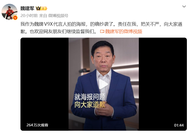 3月6日晚,答案来了!魏建军没有等公关部出稿,而是自己录了一段视频,亲自道歉。核心意思就三点:1. 确实抄了,没得洗;2. 责任在我,审核没把好关;3. 该赔就赔,我们改。